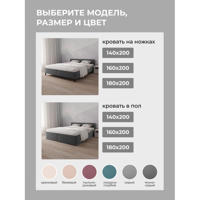 Обратите внимание: матрас приобретается отдельно. Это даёт вам свободу выбрать именно ту жёсткость и тип наполнителя, который подходит под ваши предпочтения. В нашем каталоге представлен широкий выбор качественных матрасов разных ценовых категорий.